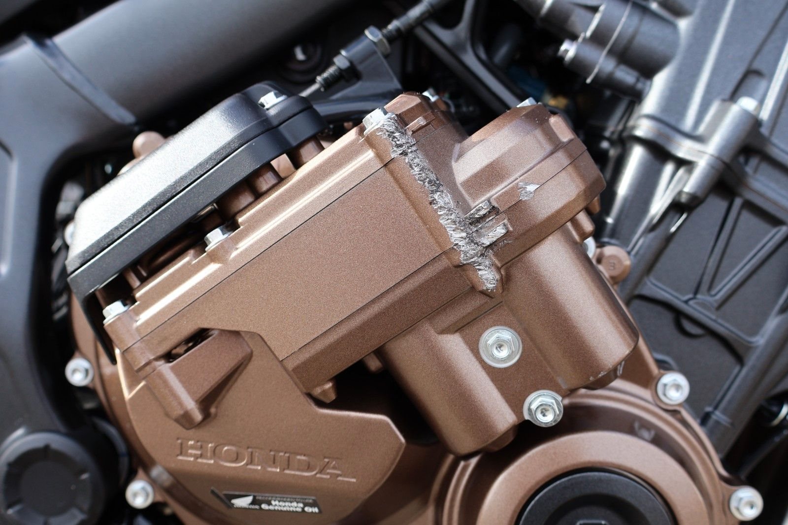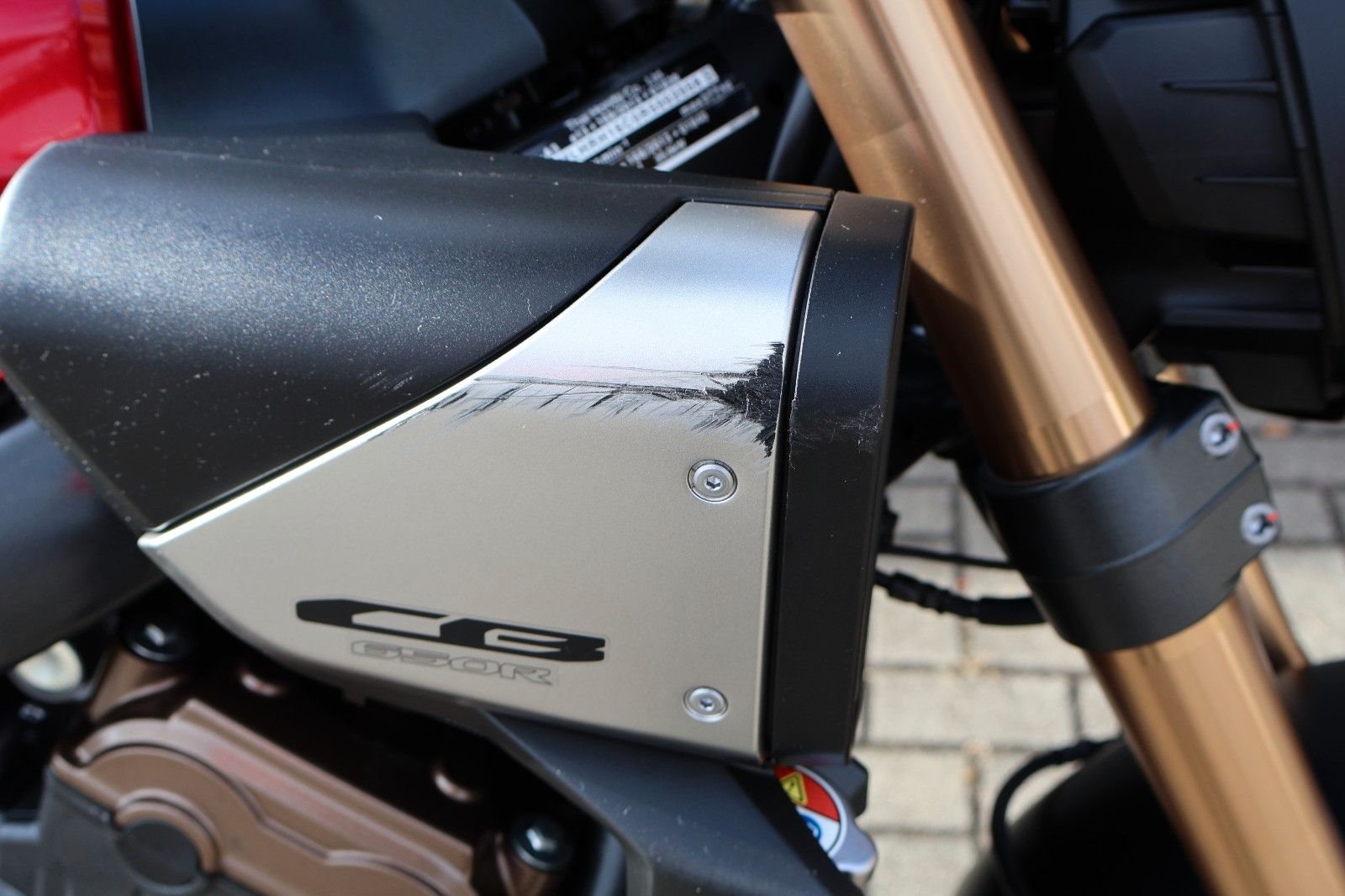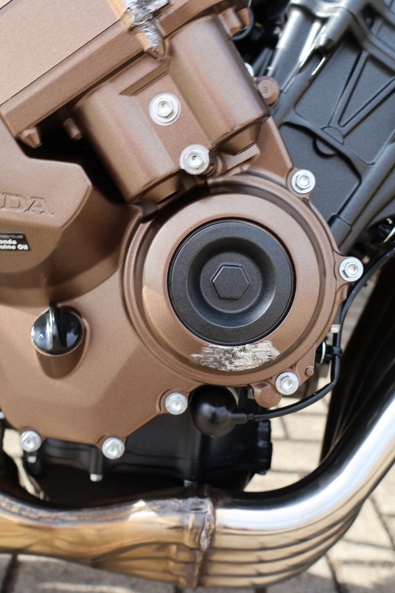 Du hast es in der Hand. Der DOHC-Vierzylinder-Reihenmotor leistet in der Spitze 70 kW (95,2 PS) - der rote Bereich beginnt bei 12.000 U/min - und bietet ein Drehmoment von 63 Nm. Honda Händler können das Bike für alle mit A2-Führerschein auf 35 kW drosseln und die Drosselung entfernen, sobald ein A-Führerschein vorgelegt werden kann. Da Leistung Kontrolle braucht, verhindert die Anti-Hopping-Kupplung das Blockieren des Hinterrads bei starkem Bremsen und Herunterschalten. Das Notbremssignal (ESS) wird bei Vollbremsungen aktiviert und sorgt so für bessere Sichtbarkeit auf der Straße.
